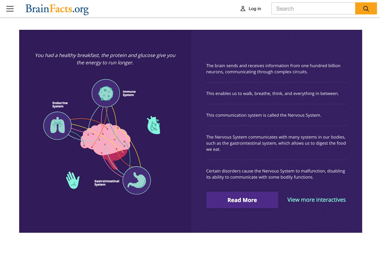 Oct 30, 2017Press Release, News from SfNIt’s a new era for BrainFacts.org. Relaunching today with an interactive brain model and a suite of new multimedia features, BrainFacts.org encourages the exploration and discovery of neuroscience.